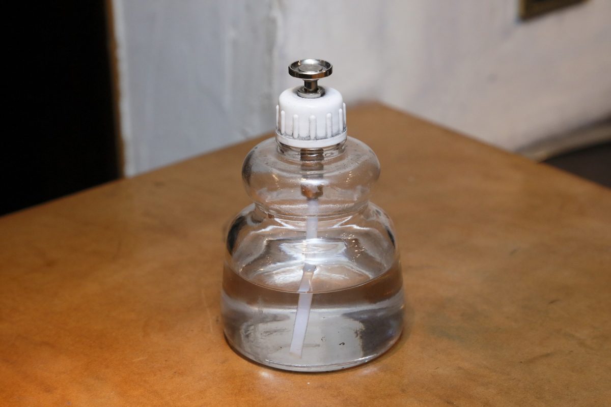革へ染料が浸透しやすいように革を溶剤で拭き取り、表面の色を抜き、乾燥させる。