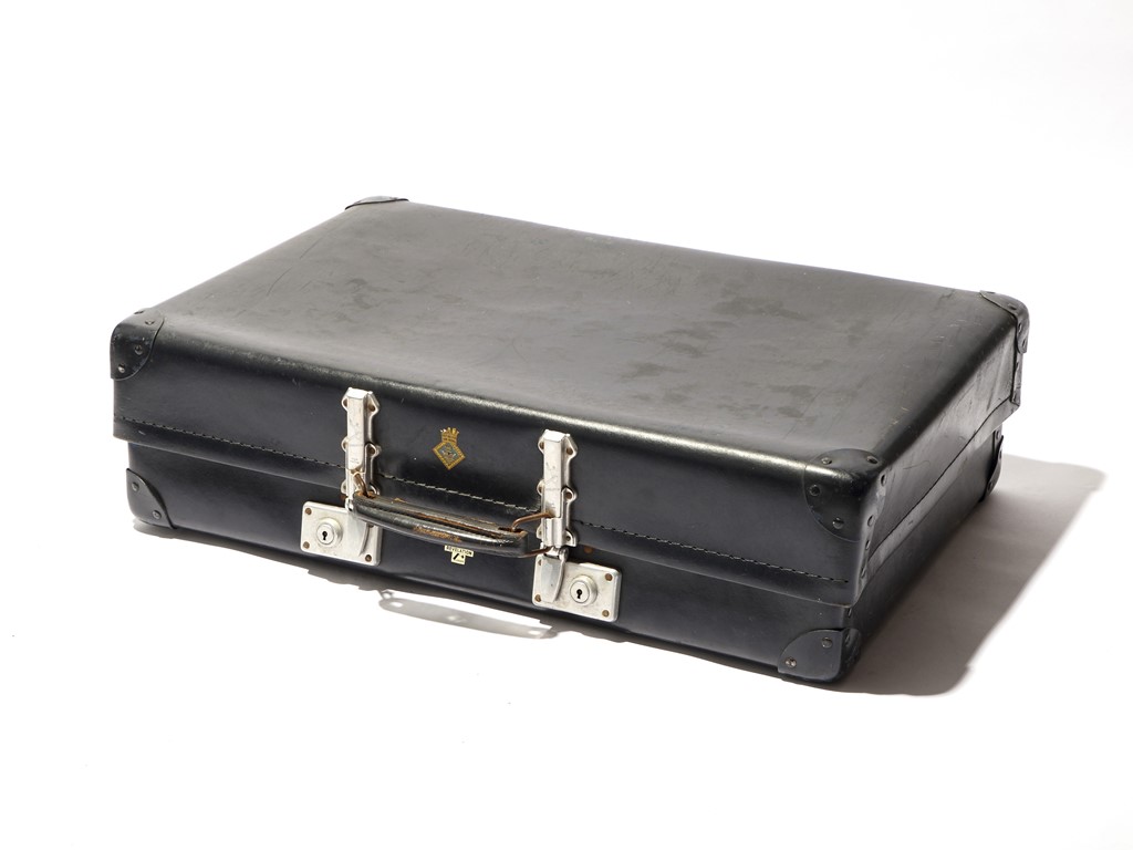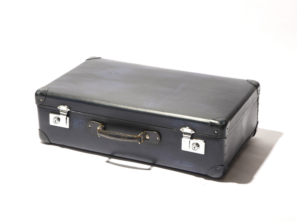 英国の伝統を守る永久不滅の鉄板品。深い藍色、ヴァルカナイズド・ファイバーを使用、四角補強が施された最もスタンダードなタイプ。希少価値はそれほど高くないが、現代も絶大な人気を誇る英国の伝統ある有名なGLOBE TROTTER製品だけあって、値段は3万円以上。[W700×H230×D440㎜]