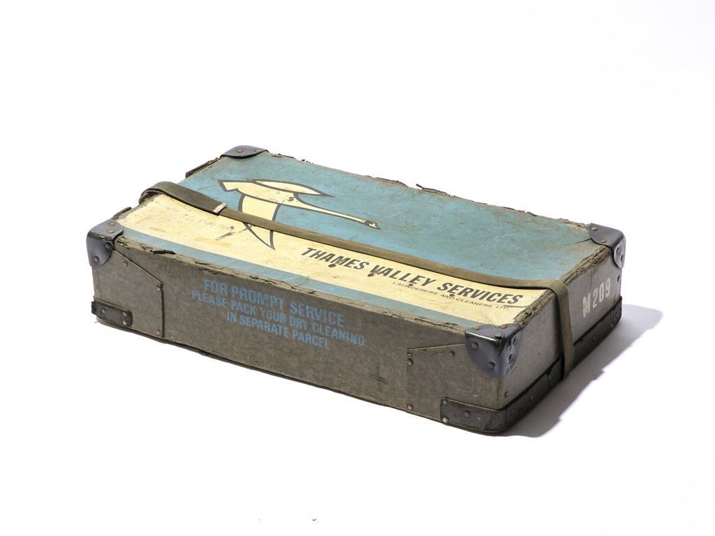 英国のクリーニング店が衣類を届けるために使用したランドリーボックス。当時は支給品だったが、50年以上も前のものが状態も良く残ることは稀で、6000円以上の値が付く。[W600×H350×D130㎜]
