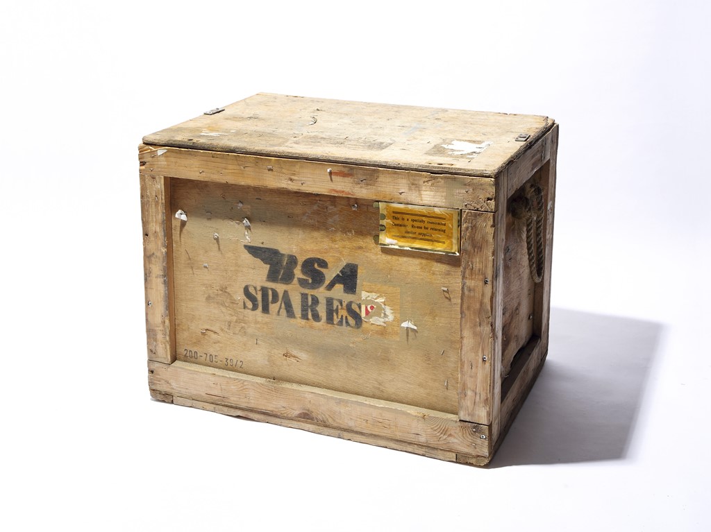 英国のバイクメーカー、BSA社が、エンジンなどのパーツを輸送する際に使った木箱。トランクではないが、こういった変わり種が見つかるのも旧いトランク探しの面白さ。テーブル変わりに使っても素敵。お値段は1万〜2万円ほど。[W710×H530×D500㎜]