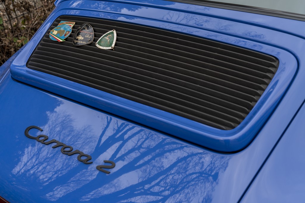 単純なスペックだけで比較すれば最新モデルに劣ることは言うまでもないが、補って余る魅力が空冷時代の911にはあると、オーナーたちは口を揃えていう。ほぼ手直しをせずに乗れるコンディション、2万7000㎞の走行距離という好条件のほか、この個体の購入の決め手となったのは、マリタイムブルーと呼ばれるボディカラーにあったという。