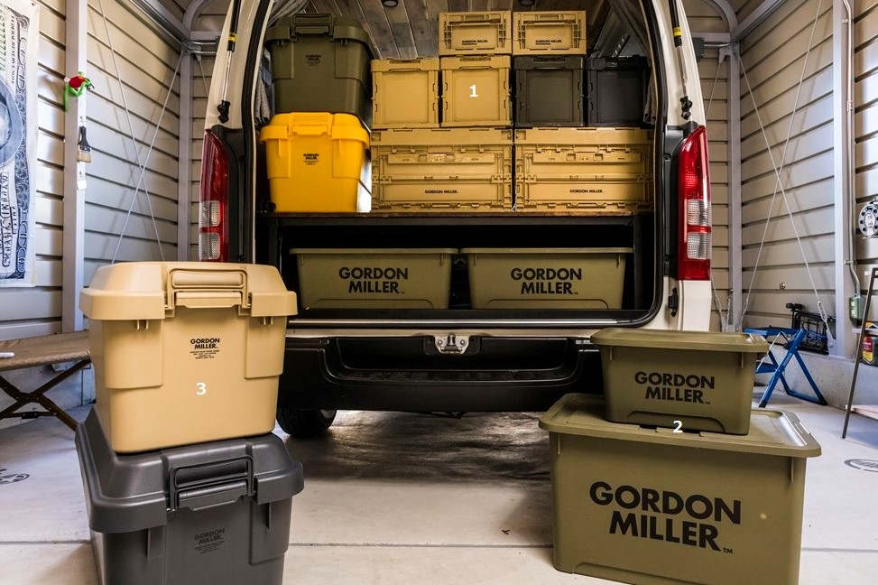 そんな「かゆいところに手が届くアイテム」が揃う「ゴードンミラー」だが、特に収納アイテムは用途によってサイズも豊富なうえ、スタックしやすいように考えられている。そのため、「キャンプ道具」や「釣り道具」と用途ごとに収納しておけば、ガレージ内の収納としてはもちろんだが、そのままクルマに放り込んでアウトドアに出かけることもできる。