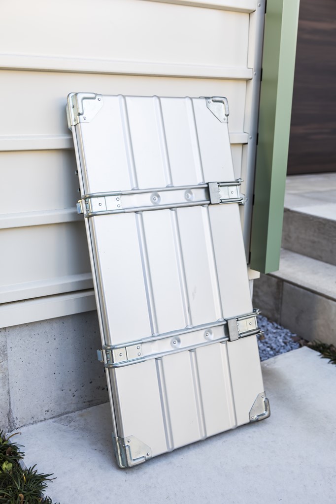使うときは容量106ℓの頑丈なアルミコンテナ。使わないときは畳んでコンパクトに。ワイルドで頑丈なのに、軽くてコンパクトに収納可能。アウトドアではテーブルにも使える万能コンテナだ。