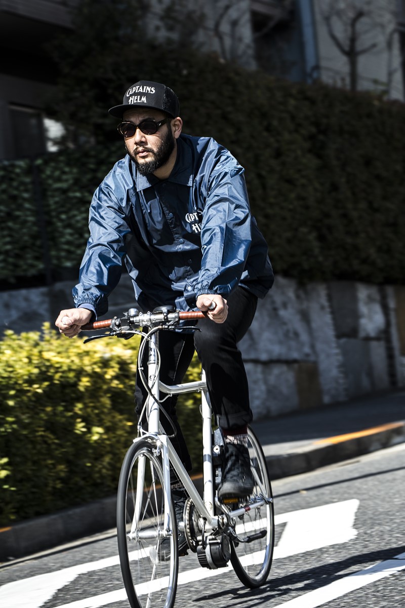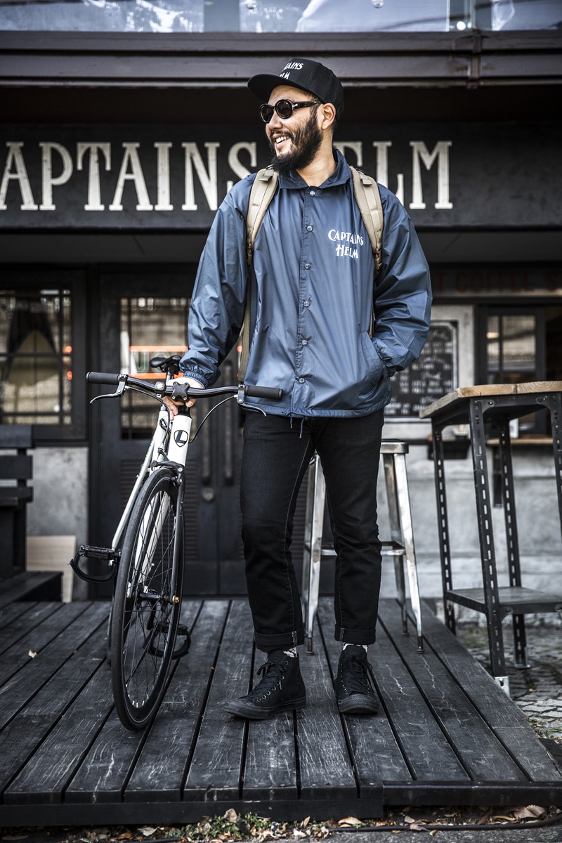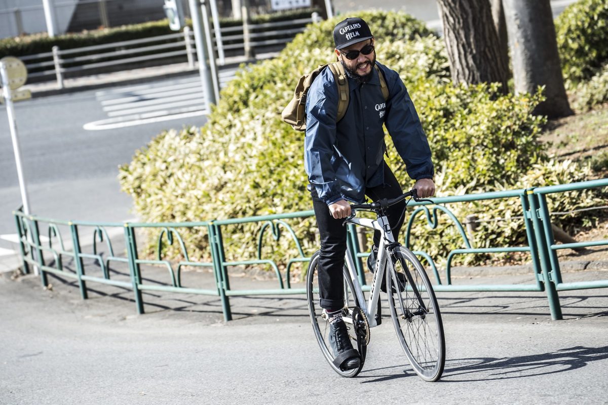 千駄ヶ谷にある「キャプテンズヘルム」のスタッフとして働く染宮さんは、普段から自転車通勤をしていて、以前は往復で20キロ以上の距離を通っていた。しかも愛車は常にペダルを漕ぎ続ける必要がある固定ギアのピストバイクというから驚き。今回通勤でe-bike(電動アシスト自転車)に乗ってもらい、乗り心地を比べてもらった。