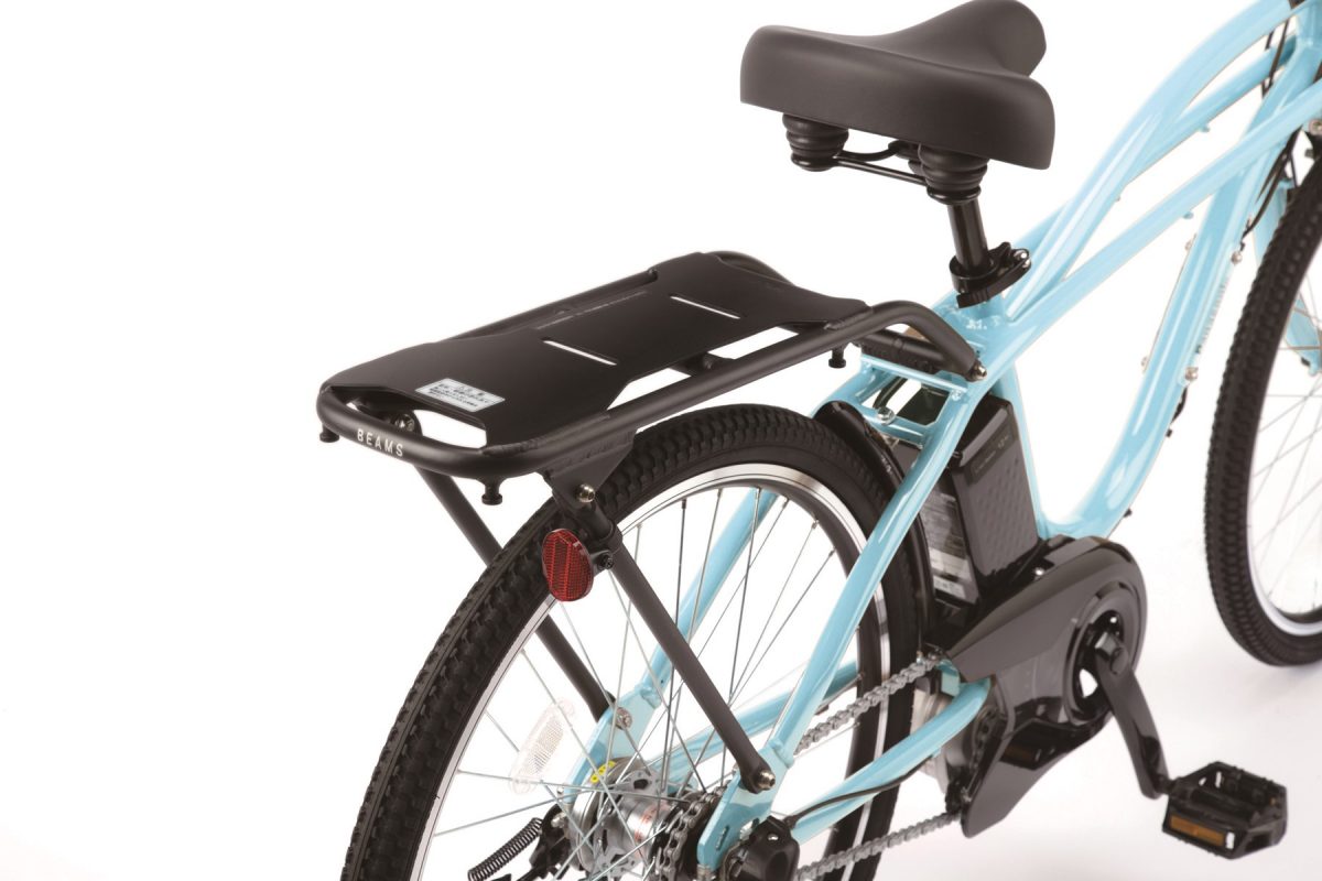 鋲打ちのサドルや、アルミペダル、真鍮ベルといったクラシカルな金属パーツを多用。40%容量アップを実現した新型バッテリーを搭載しアシスト走行距離もアップ。13万6400円