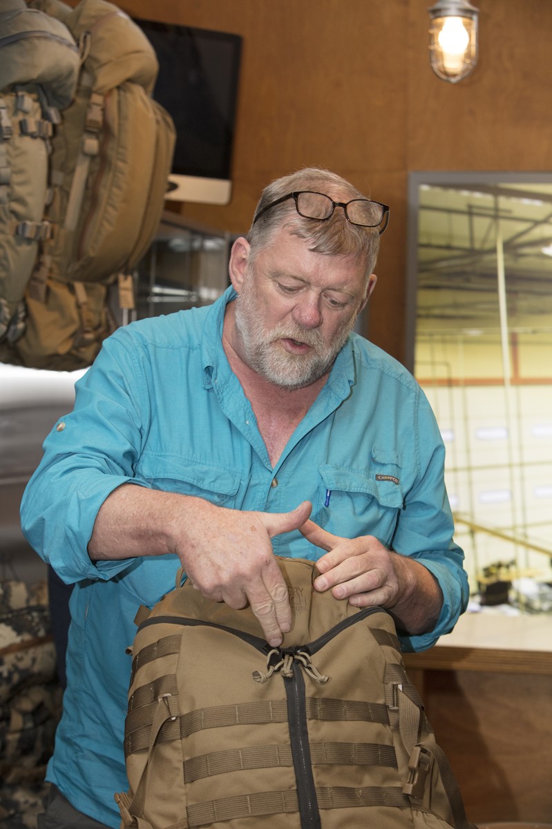 彼が電話口で話すには、赤いナイロン生地の上からスプレーで迷彩塗装を施して、個人装備として現場で使いたかったそうなんだけど、そのパックは撥水性の高いテフロン加工の生地を使ったモデルだから『スプレーを吹いても色が付かないから、どうやったら色を付けられる?』という内容でさ。そこで私はその兵士に『ミリタリー仕様にカスタムしたその極地遠征用のパックを作ったら、ある程度の数を買ってくれるのかい?』と尋ねたんだ。それがある意味、ミリタリーラインのようなプロフェッショナル向けにパックを作り始めるきっかけだね。