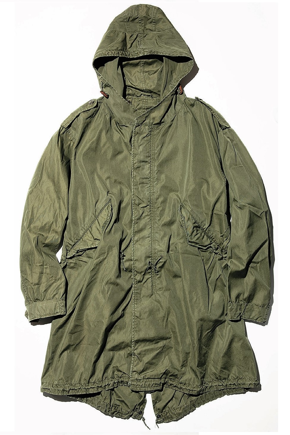 米国陸軍が朝鮮戦争で実戦に投入したフィールドパーカ。その名の通り、1951年に採用されている。最初期型は素材が厚手のコットンサテンだったが、1952年以降のモデルは強度や軽さ、コストの見直しによってコットンナイロンに変更。’60年代にはロンドンでモッズたちに愛用されたことから、“モッズコート”という名称が広まった。また、その独特な裾の形状から“フィッシュテイルパーカ”とも呼ばれている。このフィッシュテイルは股の下でドローコードを結び、裾から風が侵入するのを防ぐためのデザイン。またM-51はウールパイルのライナーを脱着でき、当時はフィールドジャケットと重ね着して防寒性を高めていた。