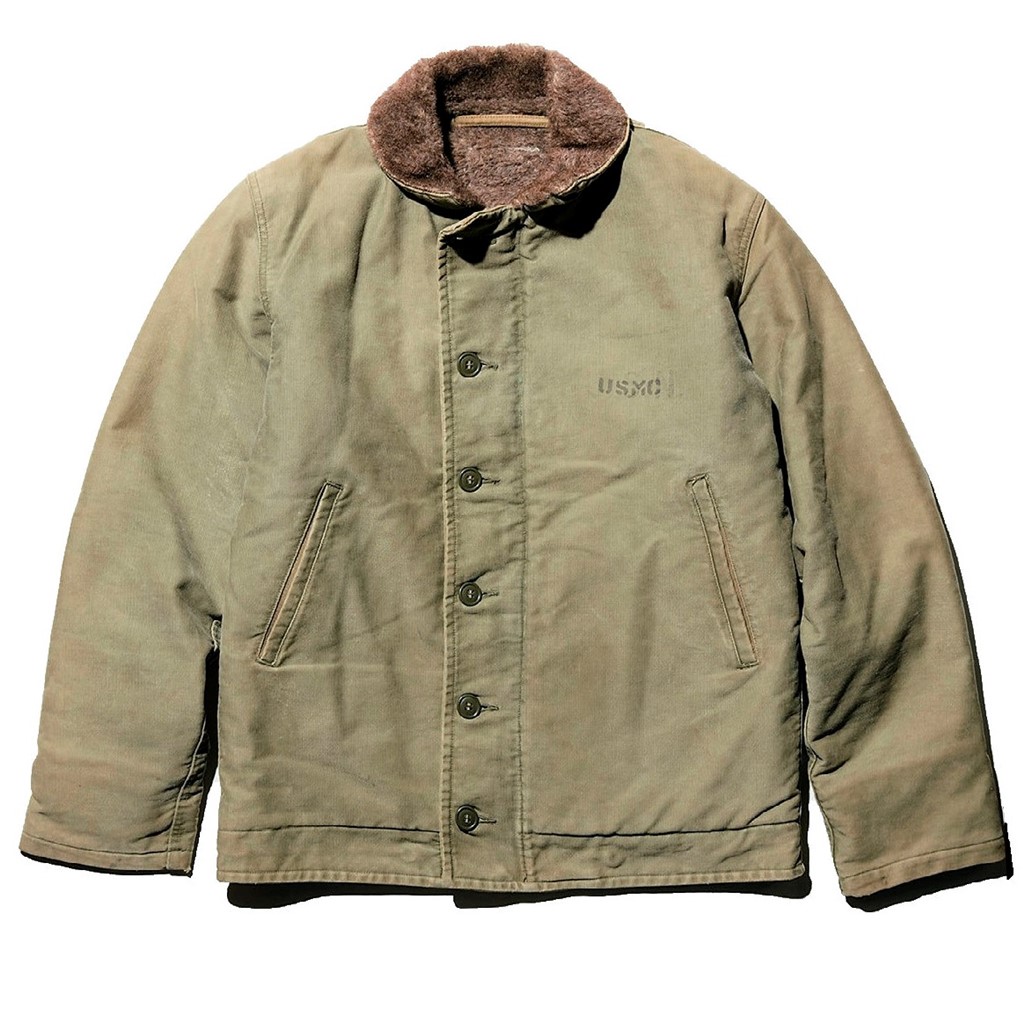 第2次世界大戦から朝鮮戦争時にかけて、海軍において同素材のトラウザーズとセットで艦艇乗員用に採用された。表地にジャングルクロスと呼ばれるコットングログラン、裏地に遮風性と保温性に優れたアルパカモヘア・ウールパイルが使われている。この天然素材の組み合わせが、海上で寒風にさらされる兵士たちの命を守り抜いてきたのだ。1944 年にネイビーブルー、その翌年にカーキカラーのモデルが登場している。