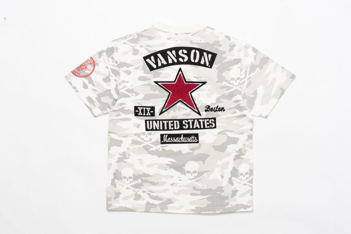 ツイル生地使用。胸ポケットには刺繍、襟の左前部分にはバンソンのロゴマークはさりげなく入る。タイダイのほかにタイガーカモ、ウォバッシュなど5種類ある。8900円