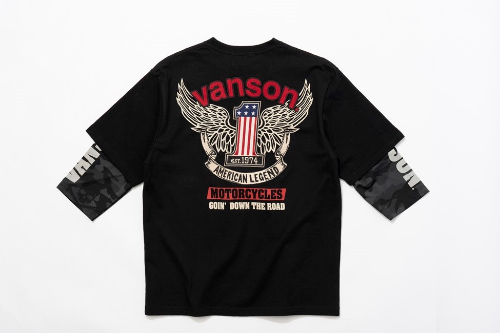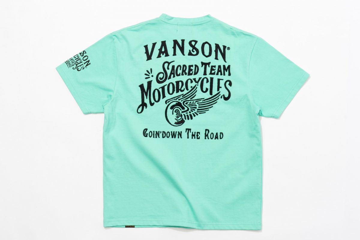 着心地も軽い天竺生地を採用。胸と背中のデザインは刺繍と抜染の組み合わせ。襟の裏側にはバンソンの文字が入っているので襟を立てるもオススメ。7400円