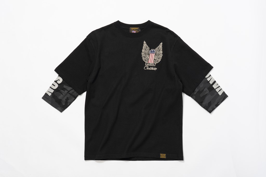 バイカーにはお馴染みのフライングウィールをプリントで大胆にあしらった1枚。肌触りも優しいサーマル生地を採用。袖や襟を切り替えることでスタイリッシュな見た目に仕上がっている。5900円