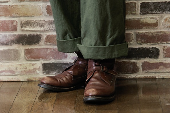 「最近は足元の外しとしてスニーカーを選ぶ人も多いですけど……」と断りを入れながらも教えてくれた亀屋さんの足元の流儀は、茶系ブーツにすること。