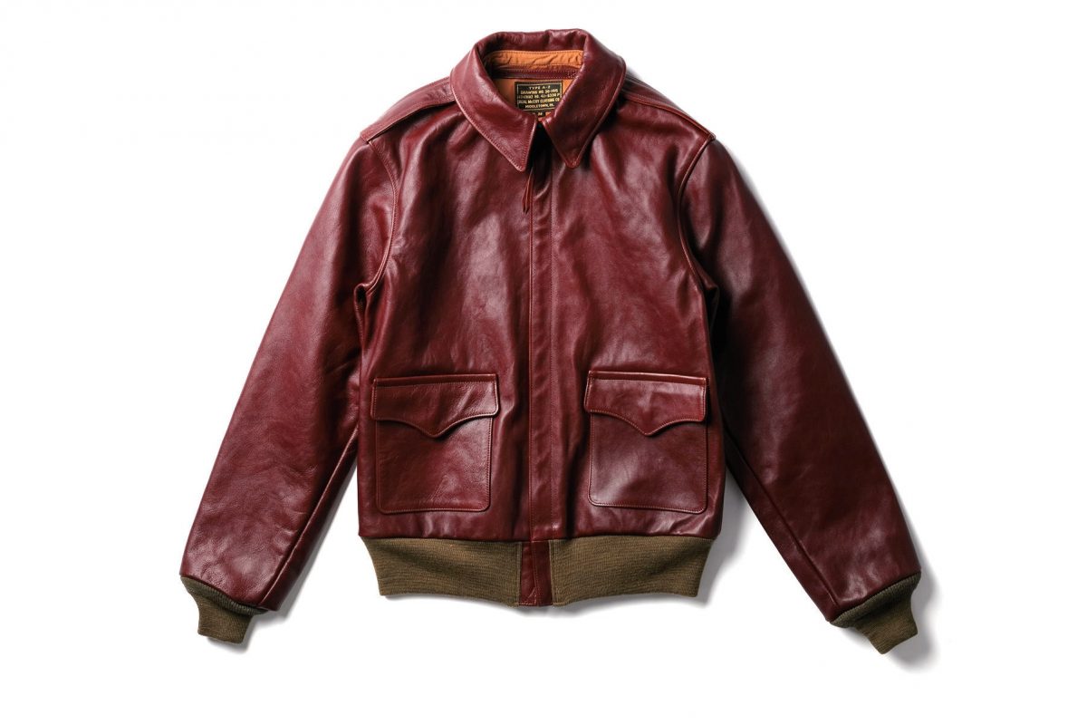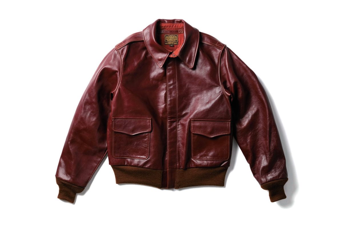 数あるA-2のコントラクターの中でも最多の契約回数を誇るエアロレザーの6契約目の最後期型のモデルがモチーフ。台襟は省略され、またレンガ色のニットパーツ、通称“赤リブ”が付けられているのが特徴だ。ボディのシールブラウンと赤リブの対比が美しく、人気が高い。18万4800円(バズリクソンズ TEL03-3632-2321)