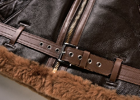 その特徴はなんといっても高級羊革を贅沢に使用したムートンジャケット。中でもタイプB‐3はムートンの毛足が18ミリもある、ヘビーデューティな存在感と抜群の保温力を誇っている。当日のデザインや素材を忠実に再現しているのも魅力のひとつ。