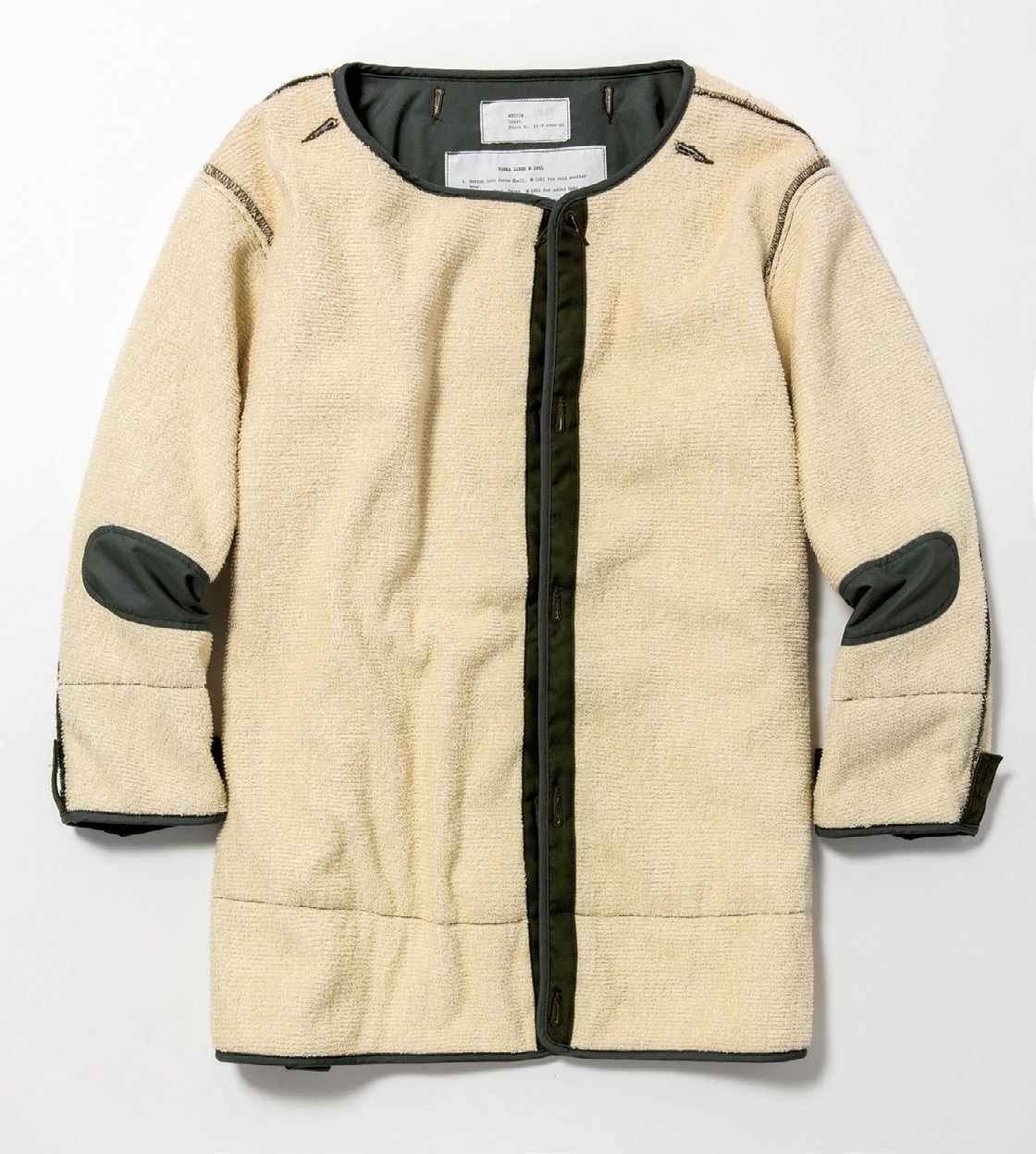 M-1948モデルに初めて採用されたレイヤーシステムは、M-1951にも引き継がれた。変化に合わせてライナーを着脱するというのは当時としては画期的な発想。前述したM-65ジャケットのライナーの発想も、ここから生まれた。素材はパイル地だが、化学繊維ではなくウールとコットンを混紡したもの。写真はリアルマッコイズのもので、これ一枚でもファッション性が高く着用できる。
