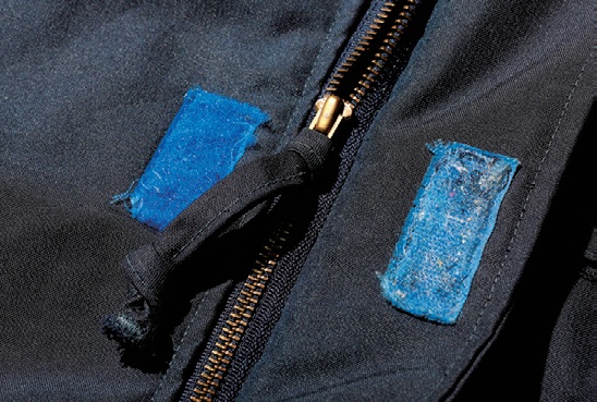 ジッパーの上からウインドフラップをベルクロで留める仕様だ。ジッパーはメタル素材のYKK製。