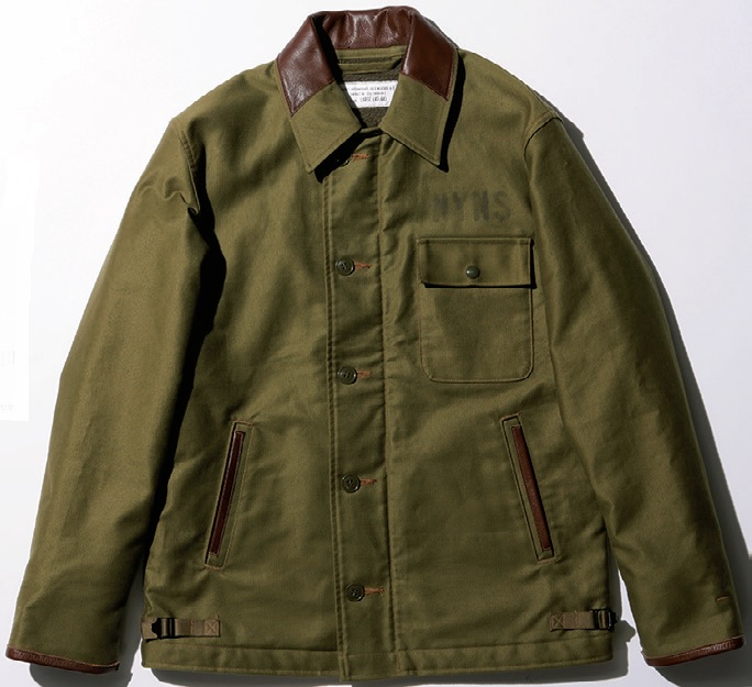 デッキジャケットとは、第二次世界大戦よりアメリカ海軍の艦艇乗員用として採用された防寒着のこと。その代表的なモデルとなるのは、’40年代に誕生した、表素材にジャングルクロスを使い、裏地には保温性に優れたアルパカとウールを混紡したボアパイルを使用するN-1デッキジャケットだ。