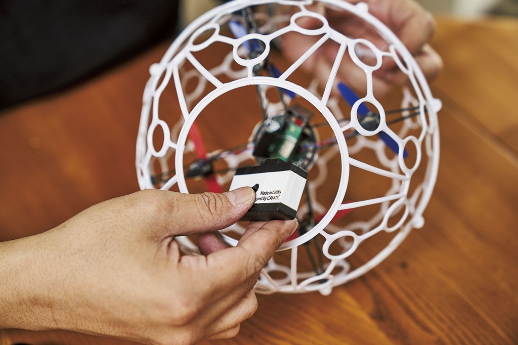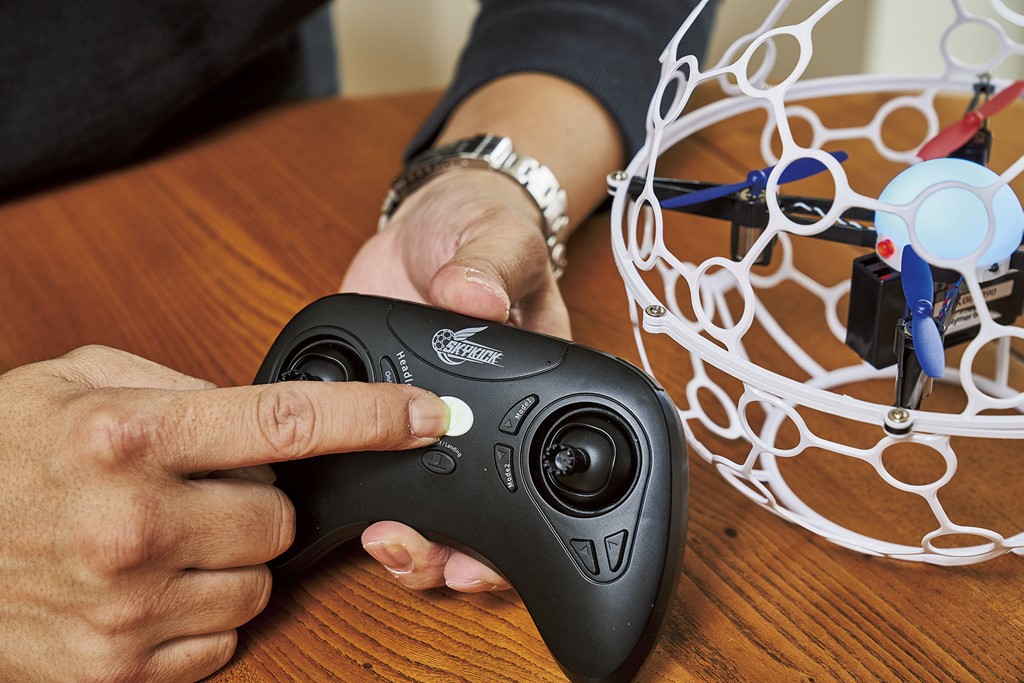 ちなみにドローンサッカーの認定機体なので、今後はこのスカイキックによる競技も行われる予定だとか。なお、送信機は技適マークを取得済みなので、安心して扱える点も◎。さあ、動かしてみよう!