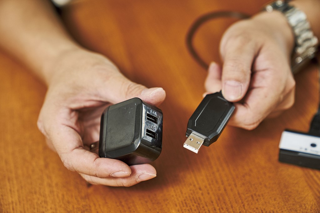 バッテリーの充電はUSBで行う。必要となるAC電源やUSBもコードも付属してくる。別途必要となるのは、送信機に使う単四電池が2本だけだ。