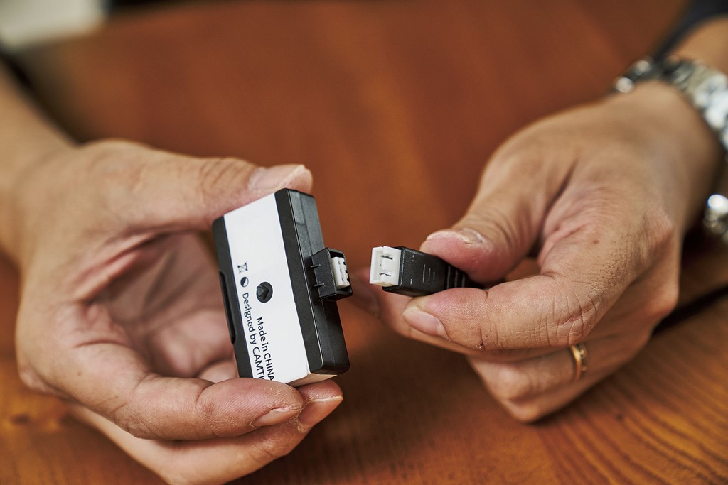 バッテリーはカートリッジ式。ケーブルがないので、プロペラに触れて断線といったトラブルがないので安心。バッテリーをバッテリースロットに差し込めはドローンが起動する。