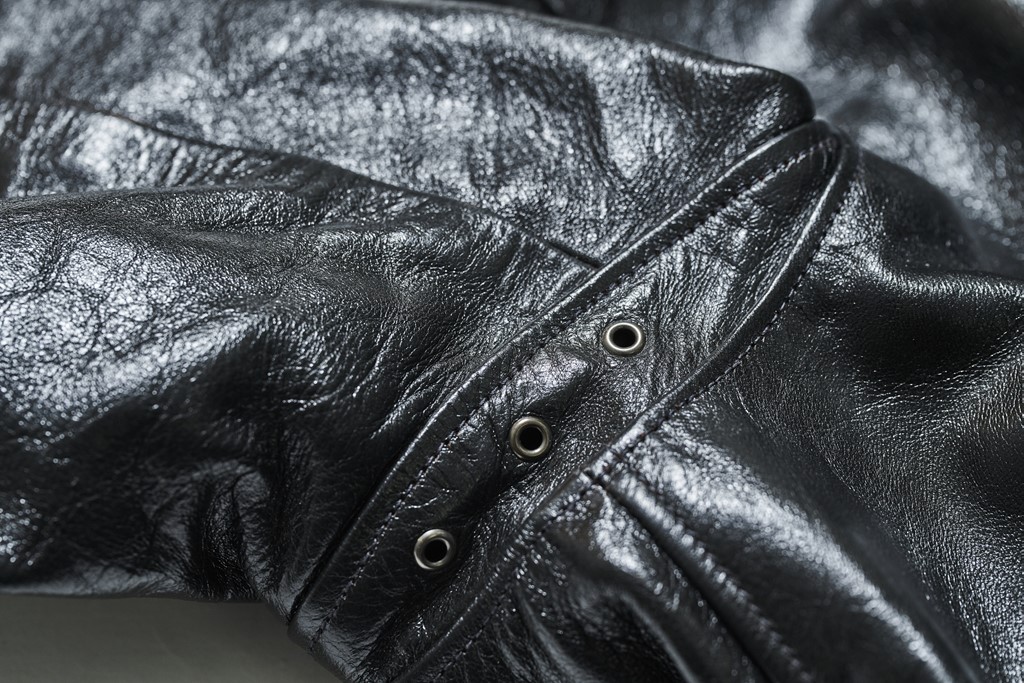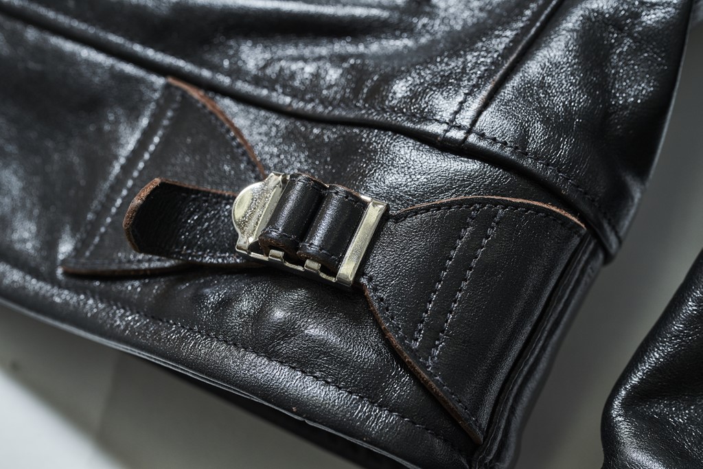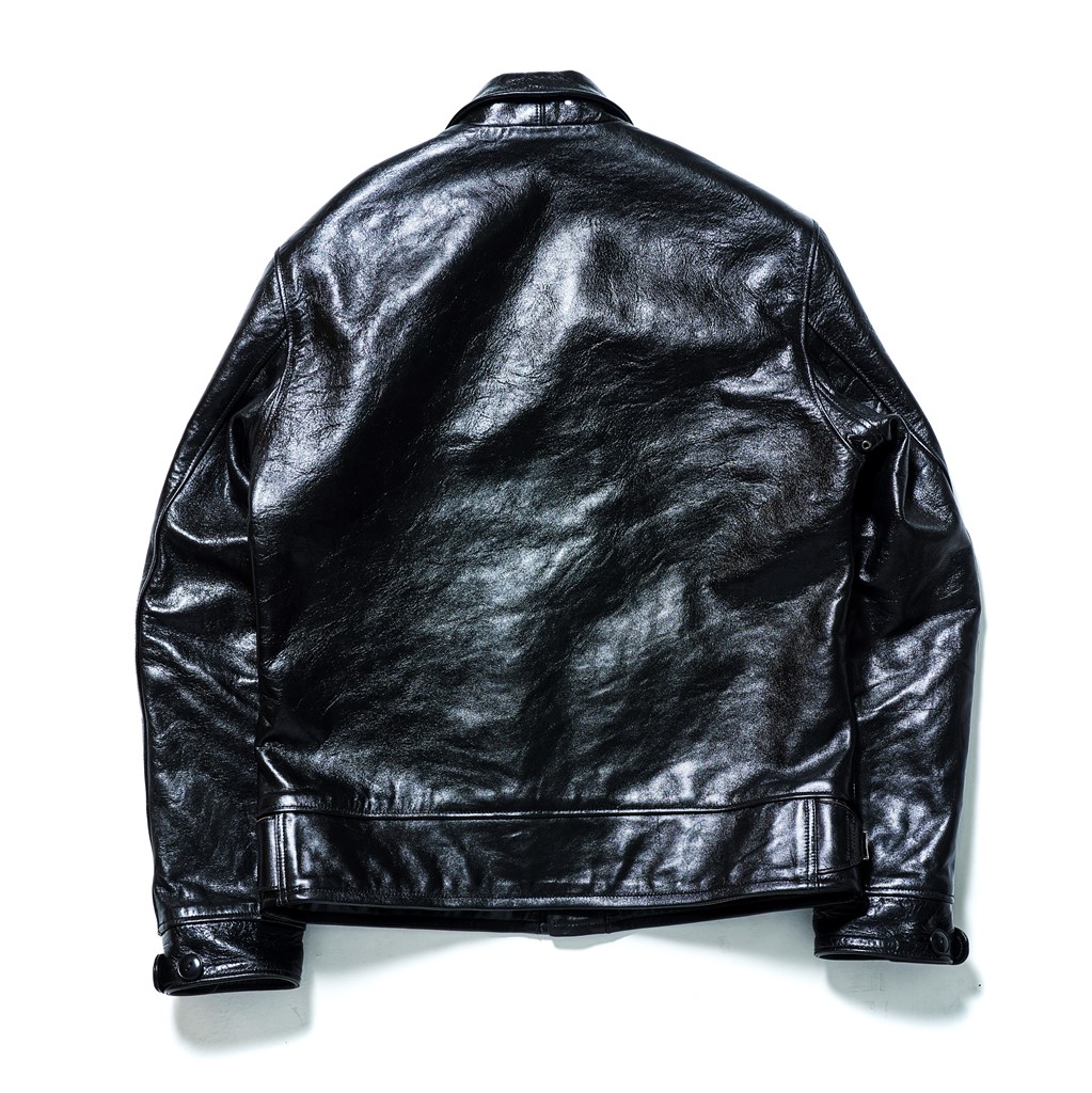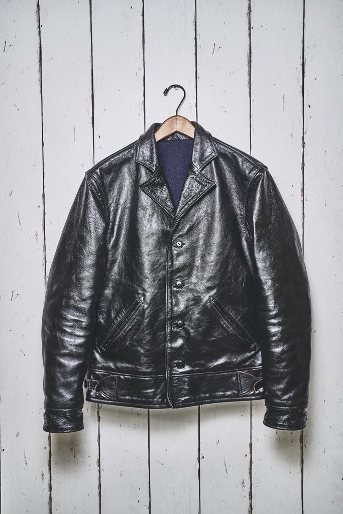 先日、ブーツブランド「メイカーズ」代表・手嶋さんと、大阪のセレクトショップ「マクフライ」に行った時のこと。ショップに入った瞬間に、壁に掛かっていた革ジャンに俺の脳が反応してしまった。鈍く黒光りする色気のある革で、A‐1にテーラードの襟を合わせたような、不思議なカタチ。聞くと、レインボーカントリーにマクフライが別注をかけたスペシャルモデルだという。これ欲しい……。