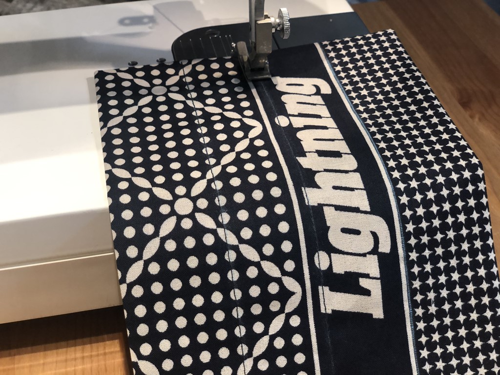 3.表地、裏地それぞれ中央で縫い合わせる。