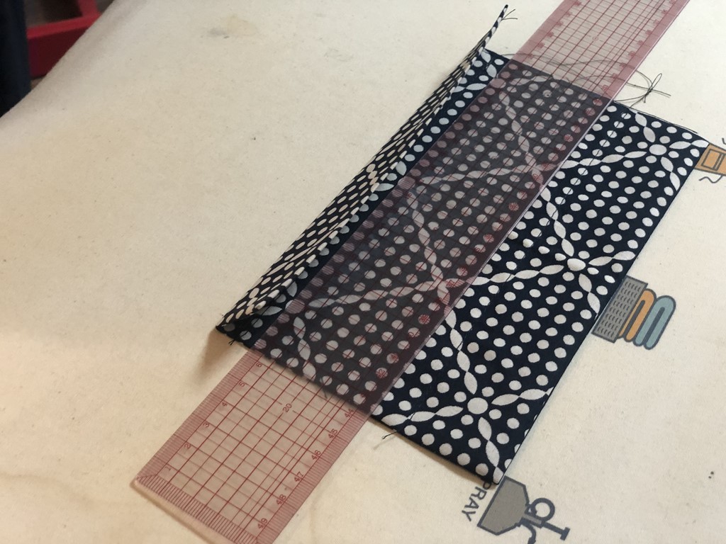 このようにヒダ状にした部分にアイロンを当てて平らにしていく。これはすごく重要な工程なのでしっかりやること。表地も同様に行う。