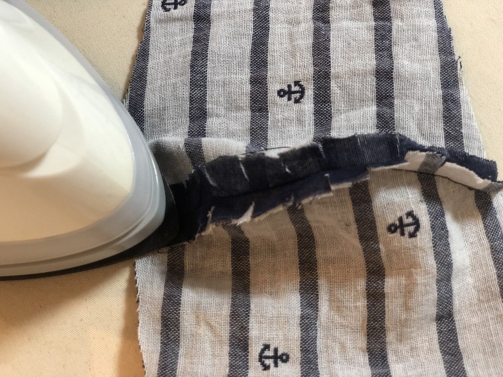 今度はそのラインに沿って折り目をつけてアイロンを当てて成形。