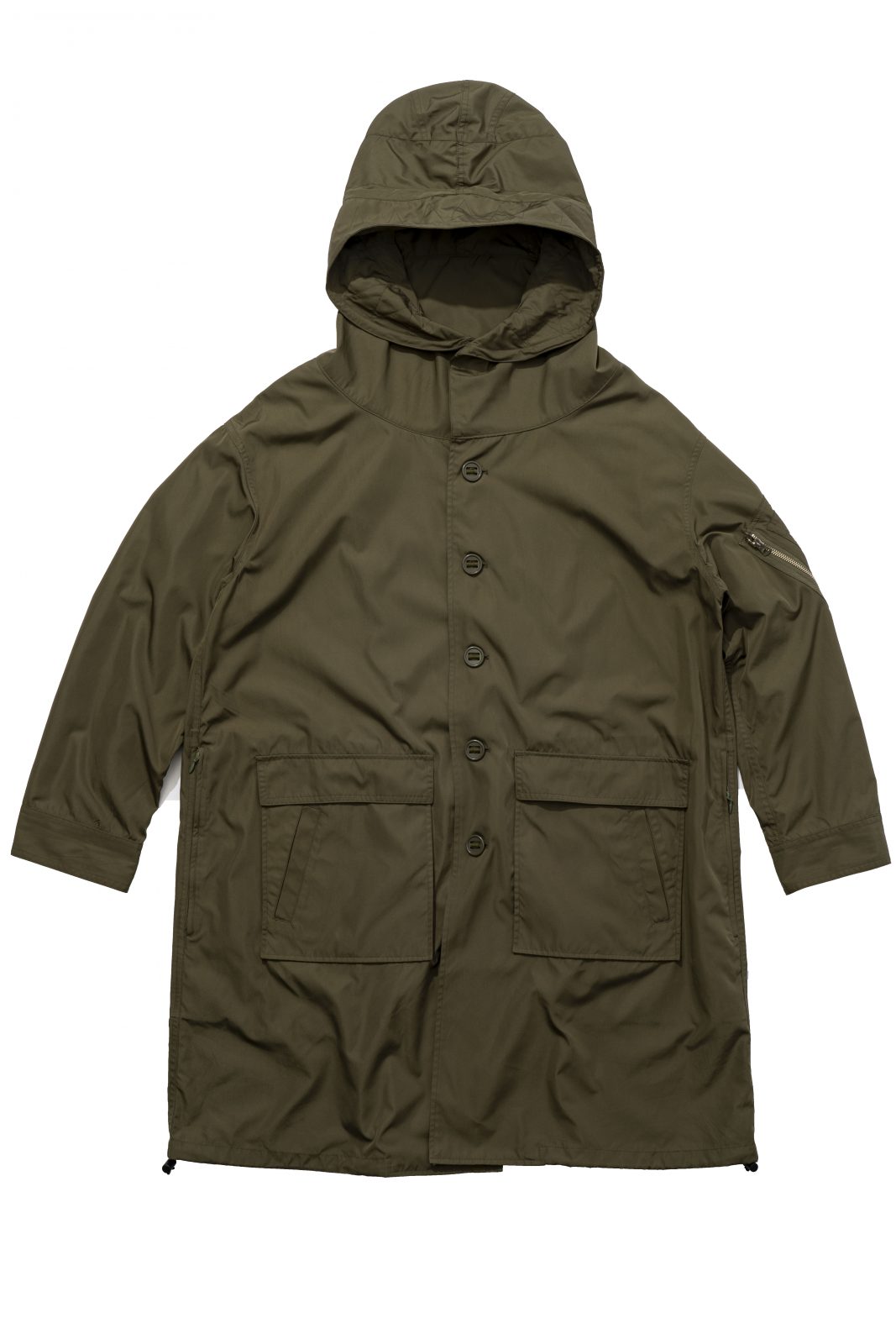 ヴィンテージワークやミリタリーのテイストを現代風に再構築したプロダクツに定評のある国産ブランドから。シャリ感のあるポリ素材で各国軍からディテールを引用したスプリングコートが到着。5万2800円(ユナイト ナイン TEL03-5464-9976)