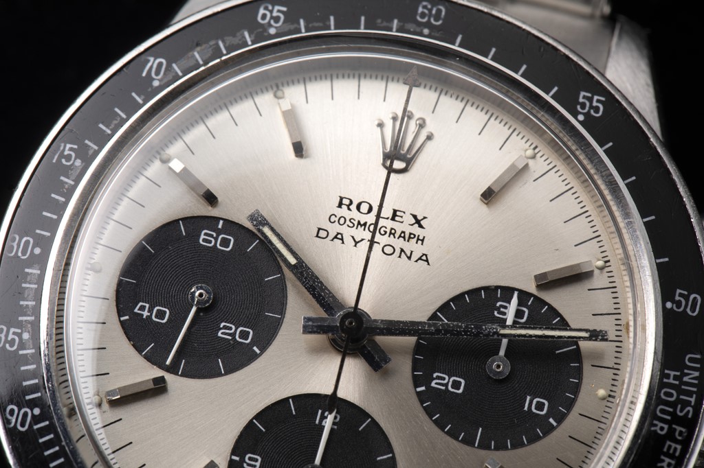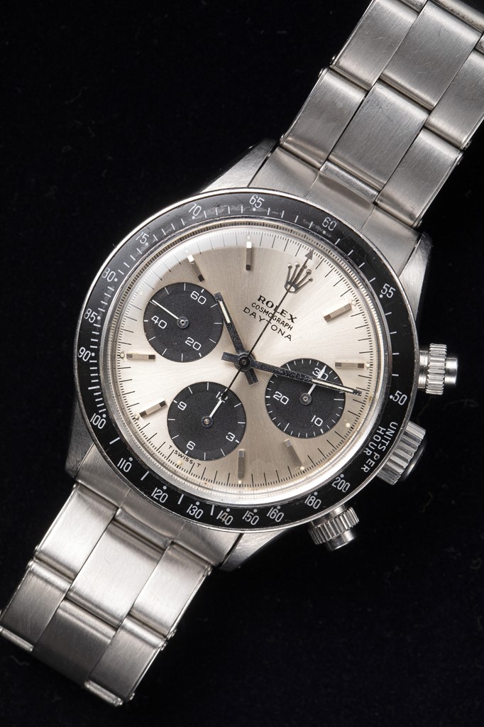 ロレックスの象徴であるコスモグラフ・デイトナ。このネーミングは、アメリカ・フロリダ州にあるカーレースの聖地、デイトナビーチに由来する。このビーチは固く締まっているのが特徴的で、20世紀初頭からカーレースが盛んに行われ、数々のレコードが生まれた。1959年に誕生したデイトナ・インターナショナル・スピードウェイがオープン。ロレックスは、オフィシャルタイムピースを務めたこともあり、カーレースのドライバー向けに開発したコスモグラフのアメリカ市場向けモデルに、デイトナという名を与えたと言われている。それが後に、世界的に広まったようだ。こちらは、プロトモデルと言われる激レアなRef.6240。1100万円(クラウンマニアックス トウキョウ)