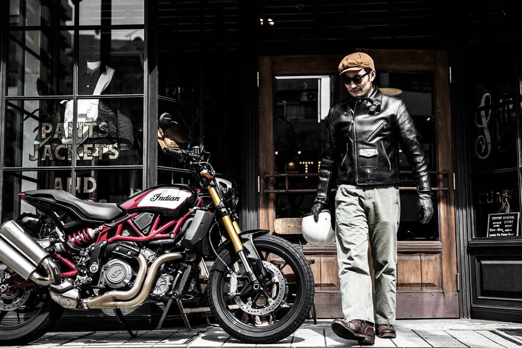 トロフィークロージングの江川さんは’47年式チーフと’34年式スポーツスカウトを所有するインディアン愛好家。レースで活躍する現行インディアンに影響されてFTR1200Sを手に入れた。