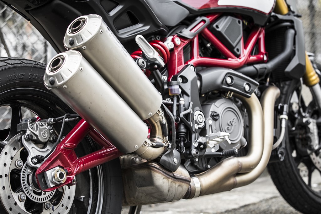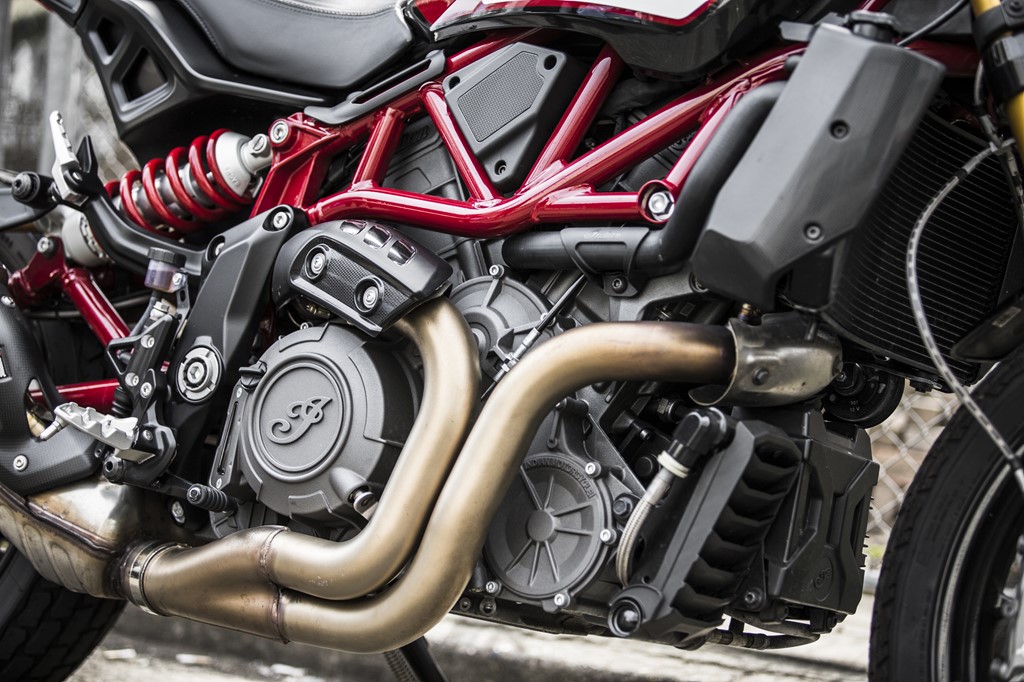 現代のハーレーはツアラーやクルーザーとしての性能を打ち出すモデルがメインを占める中、インディアンがハッキリとレーサーをモチーフとしたモデルを登場させたのは興味深い。見た目だけでなくFTR1200は足まわりやマフラーなど、欧州の高性能パーツを取り入れ性能を磨き上げている。