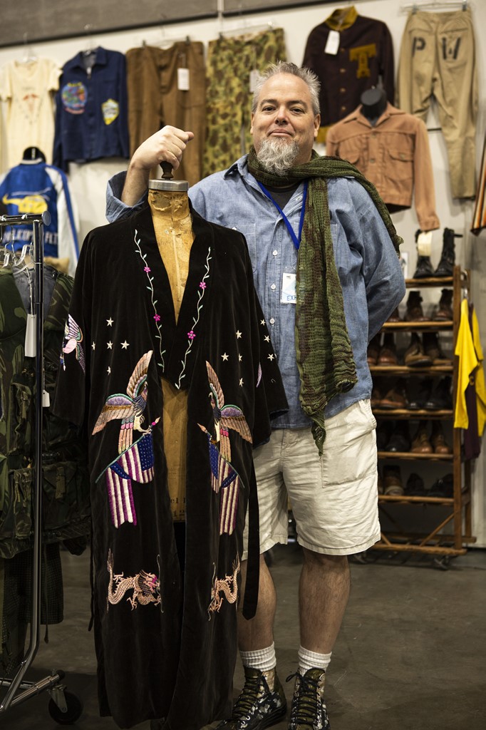 ミリタリー専門ディーラーであるボブ・チャット。今年の目玉は1890年頃の日本製ベロアガウン。手の込んだ刺繍が施されたアートのような一品だ。