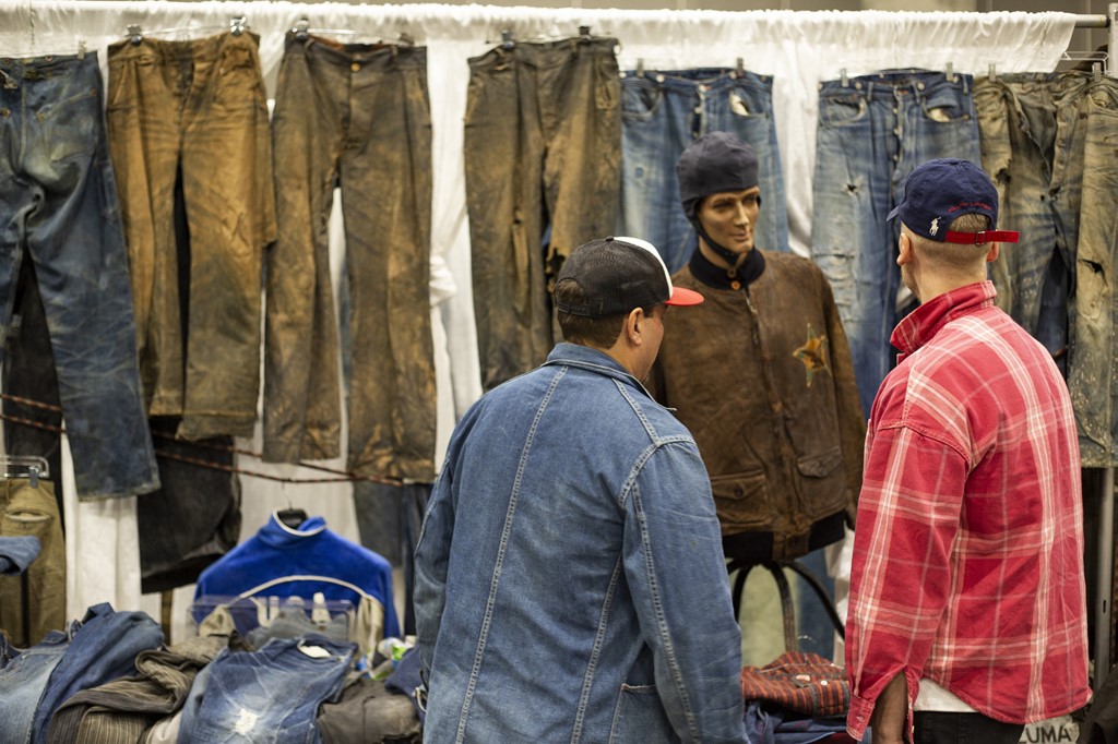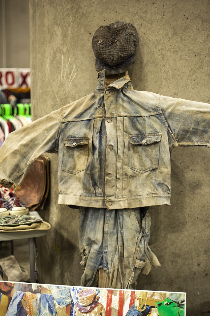こちらのブースは100年以上前のジーンズなど博物館クラスのヴィンテージがずらり。土埃で汚れたデニムトラウザーも迫力満点。