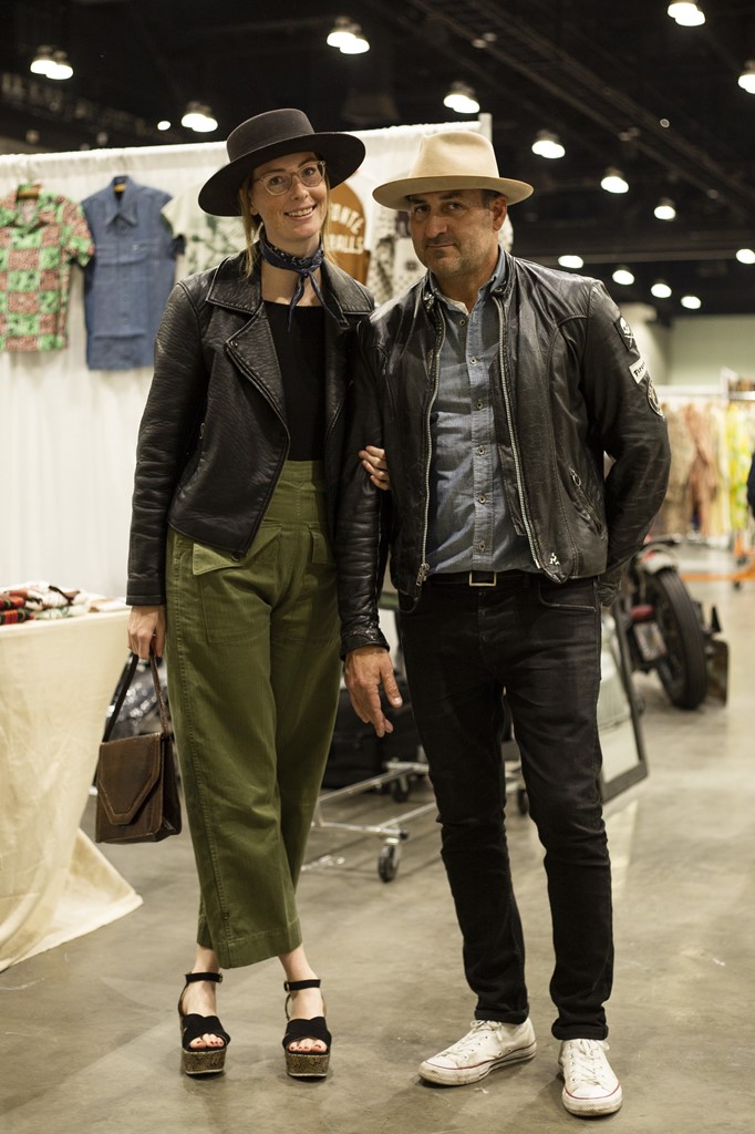 「毎年来てるんだぜ」と語るポールさんとモーガンさん。ヘリテージファッションを大人な雰囲気で着こなすナイスな夫婦だ。