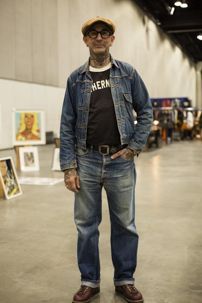 本誌でもお馴染みジップ・スティーブンソンも毎年出店。デニムやブーツ、レザージャケットといったアイテムを大量に販売していたぞ。