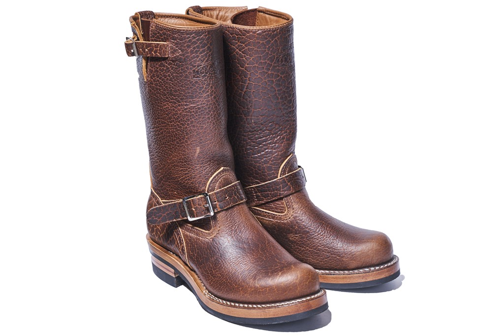男らしさが溢れるBOSSもバイソンレザーで仕立てることで、男らしさがアップしている。またシンプルなデザインのためシャフトやヴァンプ部分など革を大きく裁断しているため、シボの風合いが左右異なるなど、二つとない表情が堪能できるのもエンジニアブーツならでは。履き込むことで現れるシャフトのシワなどコチラも経年変化が楽しみな一足だ。15万2680円