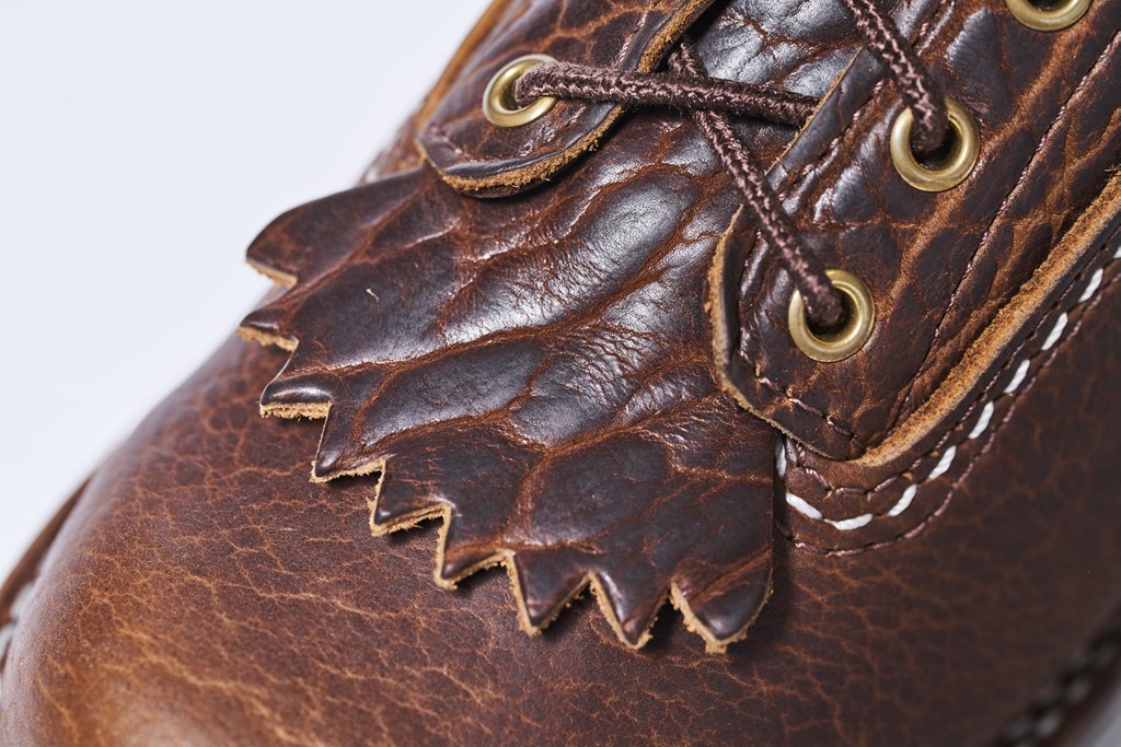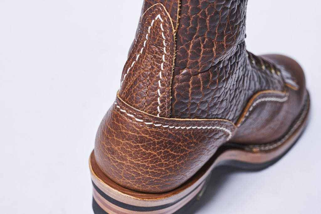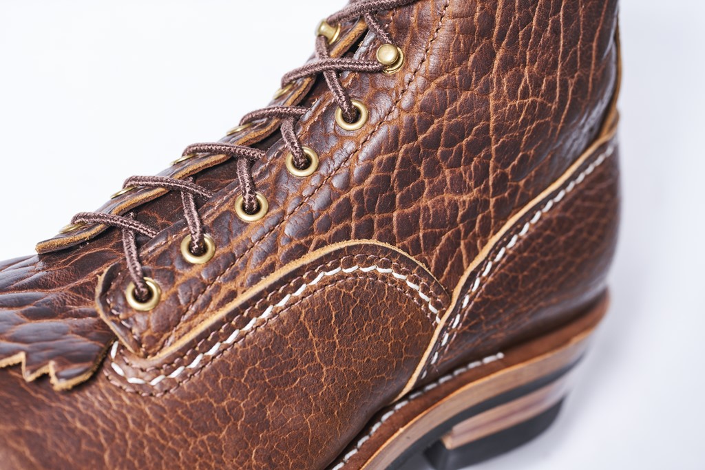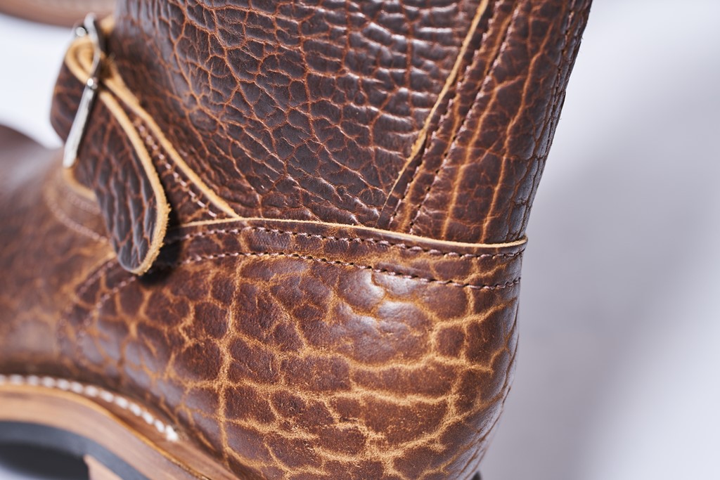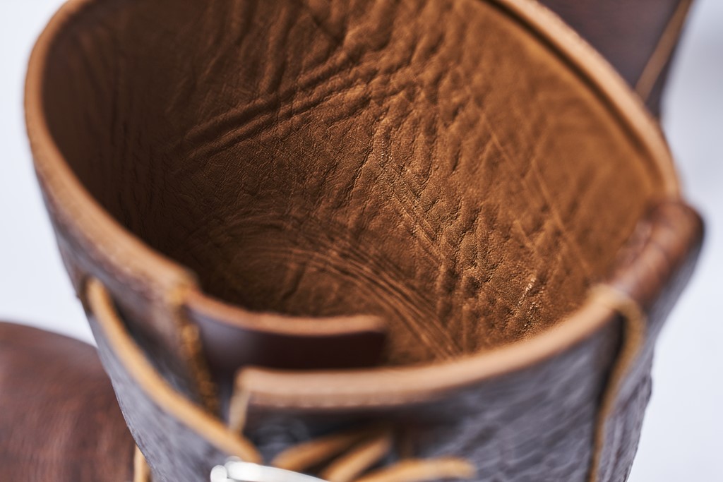 それぞれのパーツによってシボの雰囲気が異なるのもバイソンレザーの楽しみ方。個体差があるため仕上がってからのお楽しみだ。