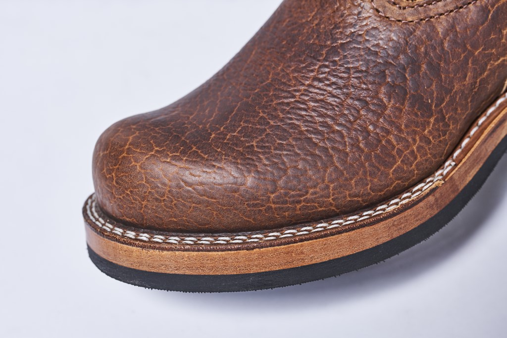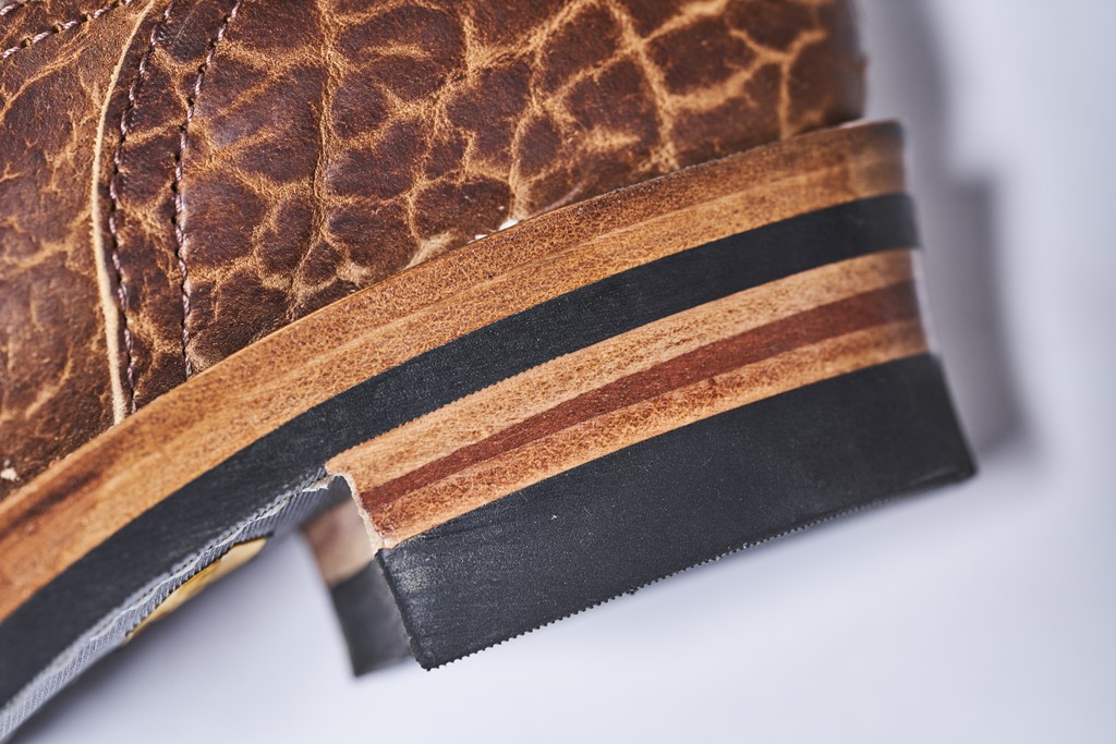 ヒールやミッドソールのカラーリングはJOBMASTERと同じくワックスエッジ仕様。バイソンのブラウンとも相性が良く雰囲気も抜群。
