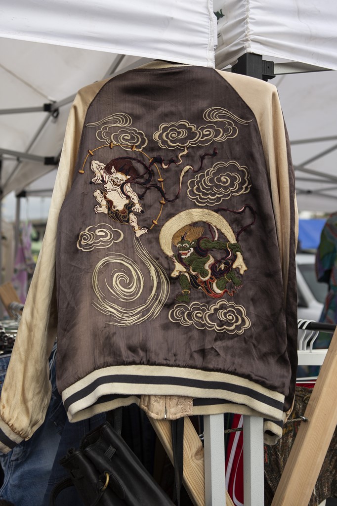 色が抜けた雰囲気がとてもクールなスカジャン。しかも刺繍は風神&雷神。これで350ドルは激安だ!