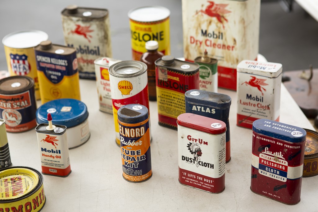 デザイン性抜群のヴィンテージオイル缶。使い道はなくともコレクションして飾るだけでも絵になる。25ドル〜。