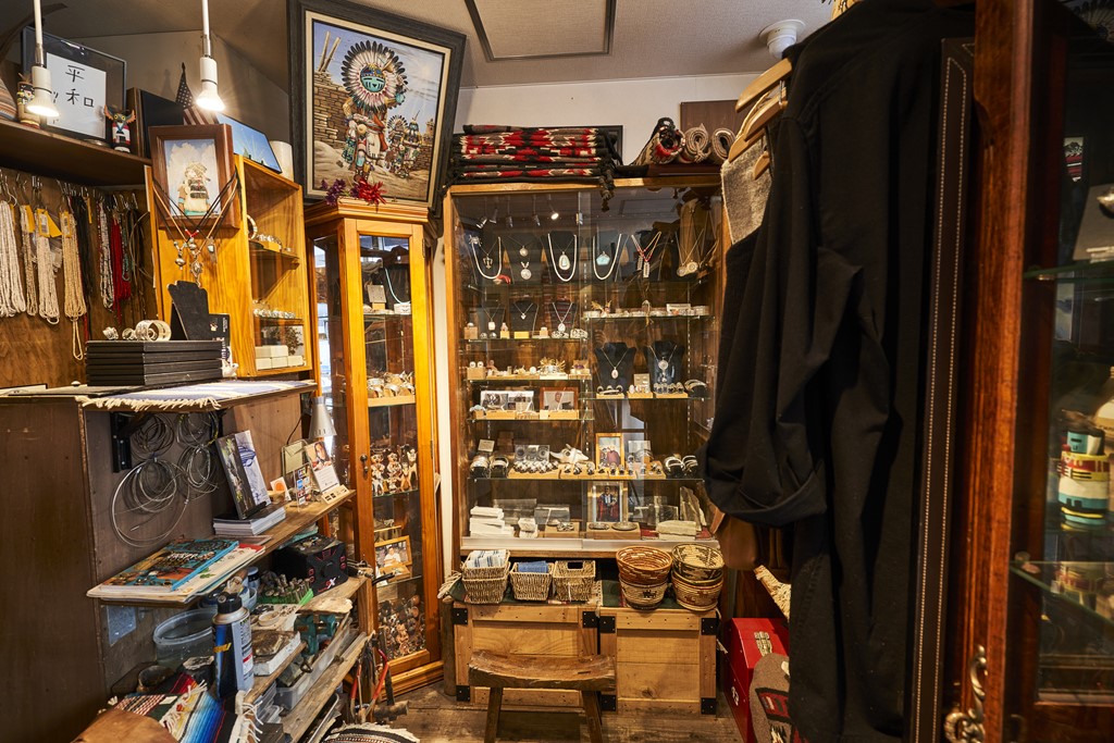 今回、取材を依頼したのは上野の名店「ブレーブストレーディングカンパニー」。オーナーの薄井さんは、多くのネイティブアメリカンの作家と交流があり、年に数度は現地に出向く。店頭にはレアモノも数多く並び圧巻だ。そこで、ネイティブアメリカンジュエリーの起源でもあるナバホ族のアクセサリーの系譜をおすすめアイテムと一緒に教えてもらった。
