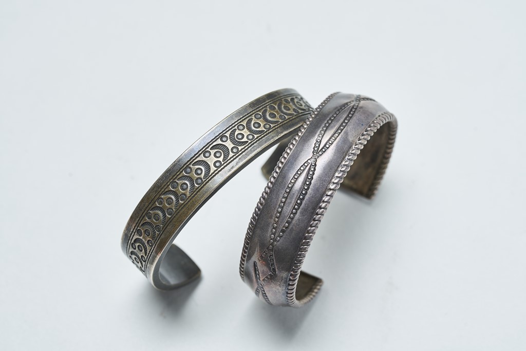 1920〜’30年代頃のバングル。フレッドハービースタイルよりも地金が厚く、品質が高い。左9万3800円、右4万8000円