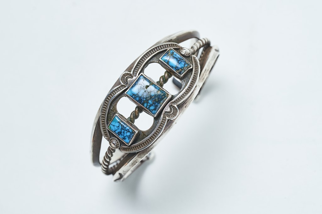 ネイティブアメリカンが装飾品にシルバーを使い始めたのは、諸説あるが、19世紀中頃といわれている。鉄鍛冶の技術がスペインからの入植者によってメキシコに伝わり、そこからニューメキシコに拠点を置くナバホ族に継承されたというのが有力だ。シルバーとターコイズを組み合わせる伝統は、19世紀末にはあったという。