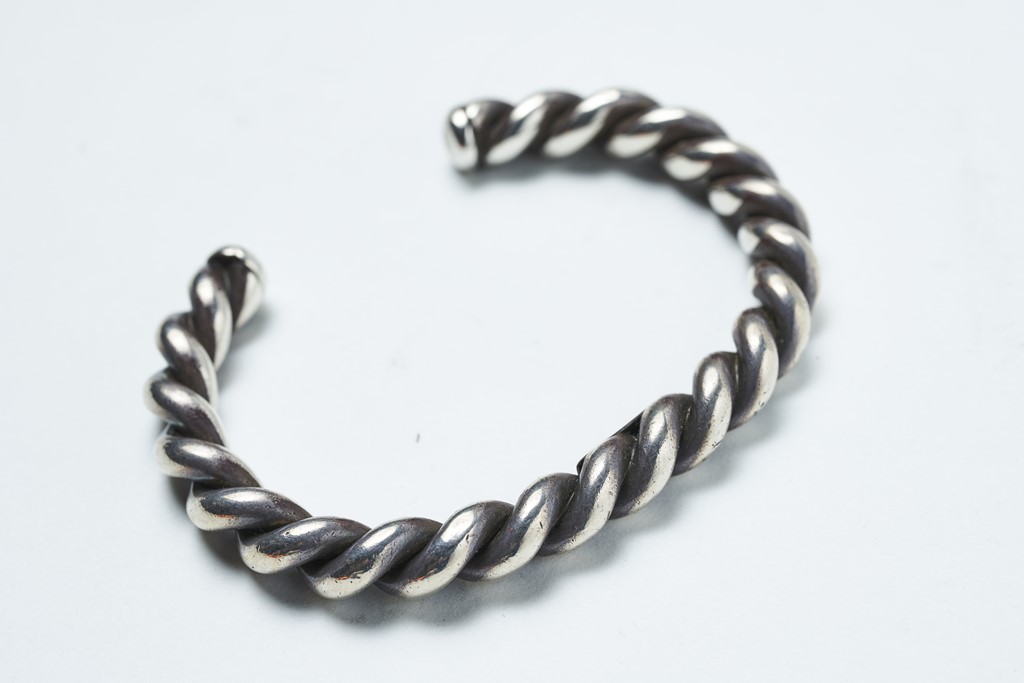 いまも見ても色褪せないモダンなスタンプワークと得意とするロープを組み合わせたバングル。裏にはホールマークが入る。参考商品