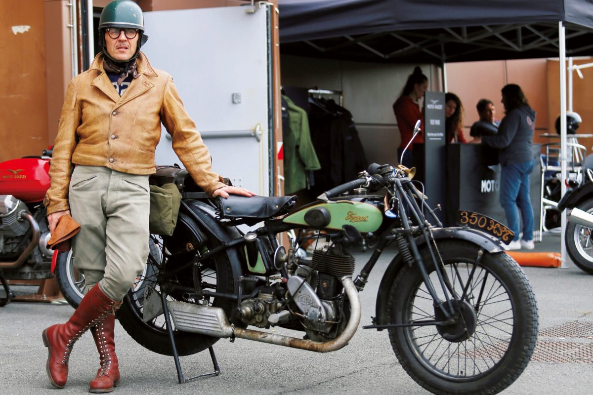 フランスのシルクスカーフブランドである「A PIECE OF CHIC」のデザイナーであるセバスチャンの愛車は、いまは無きフランスのバイクブランドのテロ。自転車の名残が残されたフレームには350㏄のエンジンを搭載する。車両の時代感に合わせた服装やヘルメットなど完璧なコーディネイトに脱帽!