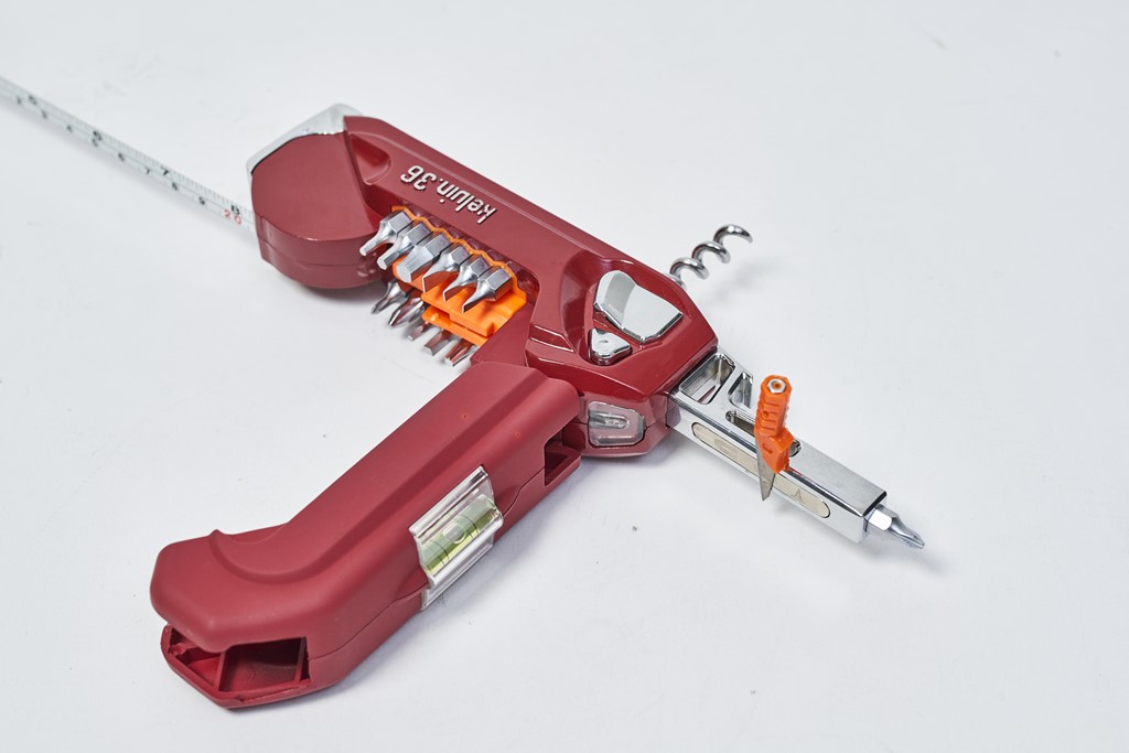 - 機能/ミニカッター、水平器、26ドライバー、LEDライト、栓抜き、磁石、コルクスクリュー、メジャー、ハンマー