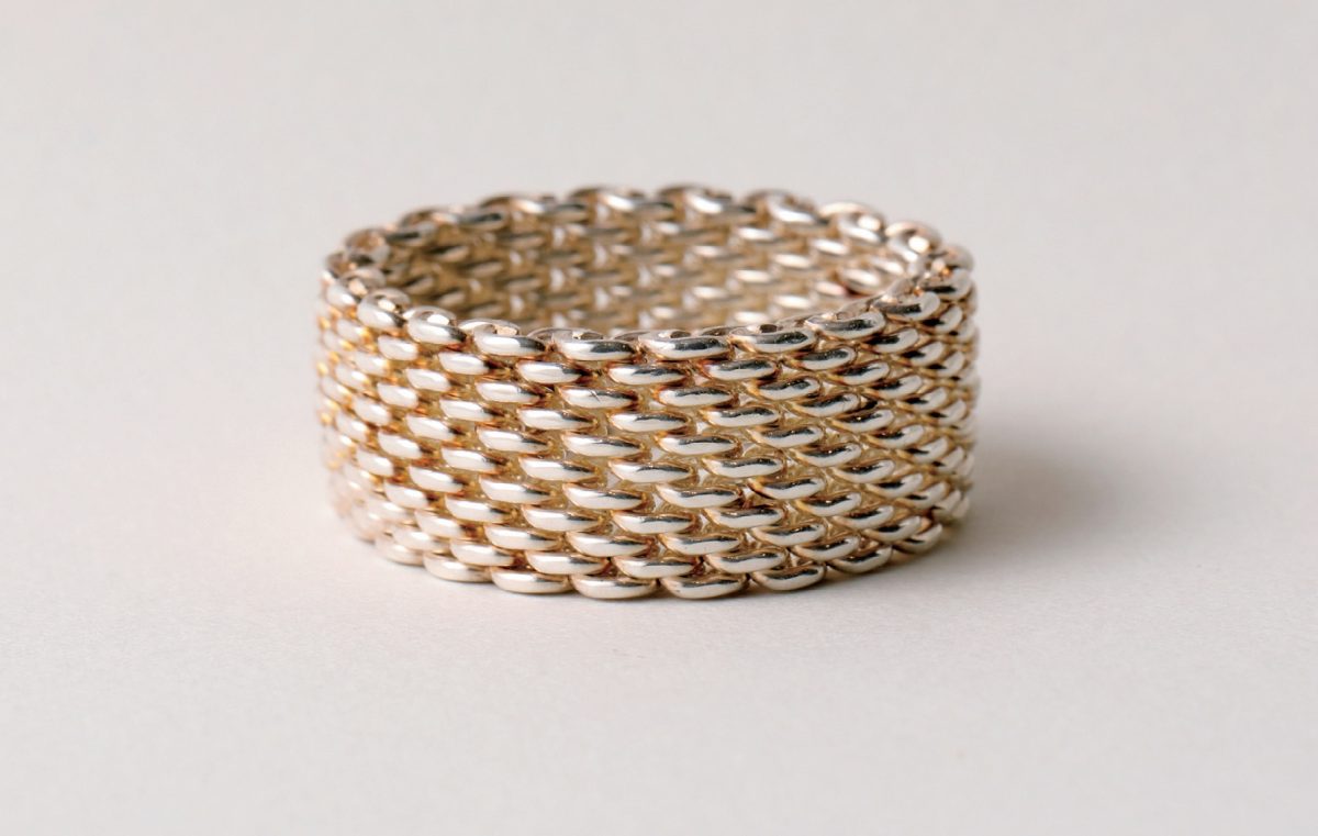 ティファニーの名作のひとつであるサマーセットメッシュリングのワイド仕様。こちらは925スターリングシルバーを使用。1万9800円