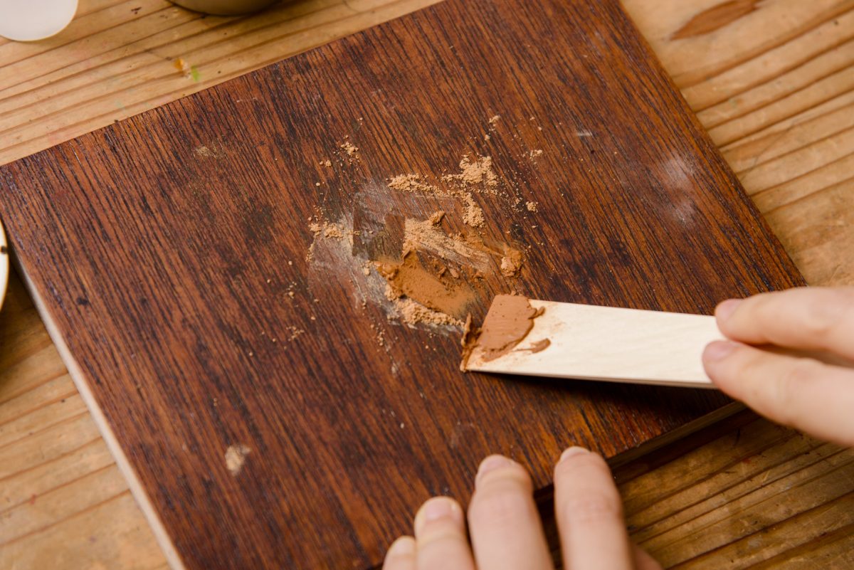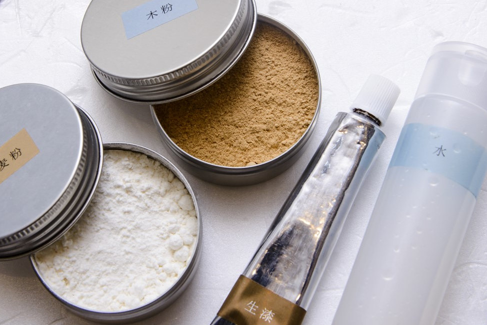 砥の粉とは砥石の粉のようなもの、水と漆を加えてパテの状態にする。