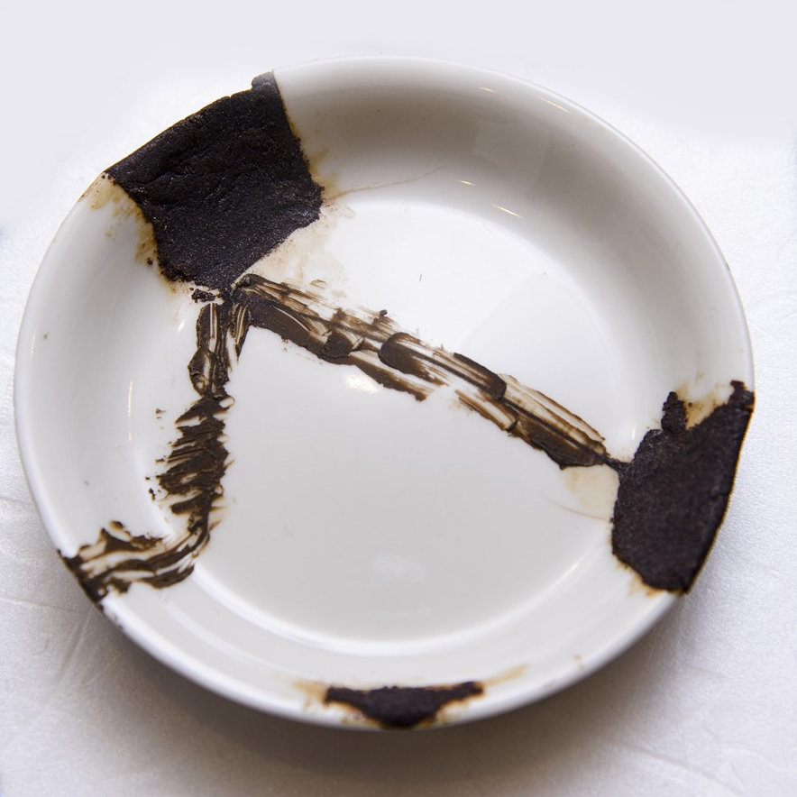 まず、割れた部分と掛けた部分に生漆を染み込ませ、1〜2日乾かす。